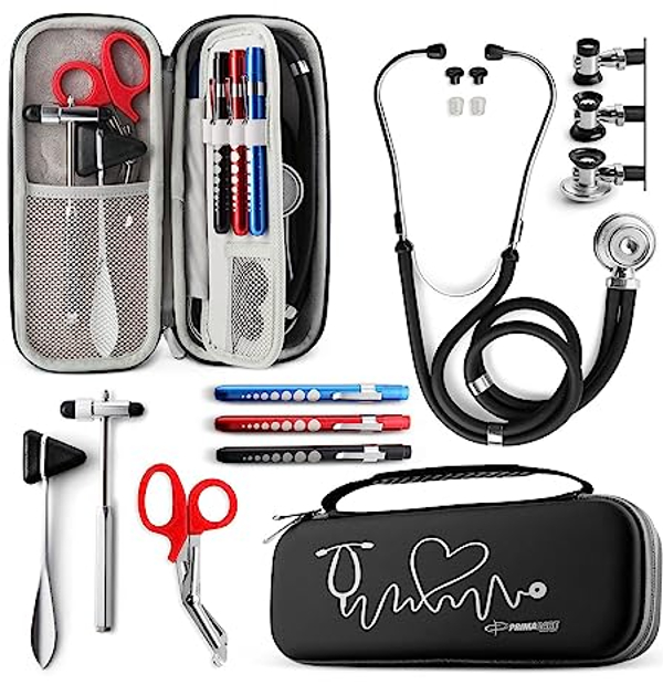 Primacare KB-9397-BK Stethoscope Case, Supplies Included, Black with Multiple Compartments, Portable and Lightweight First Aid Kit Bag with Vital Medical Supplies